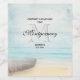 Wein machen Flaschenmarken mit einem schönen rustikalen Bild. Feine Farben von hellblau, sandig braun und sanft weiß. Eine Strandlandschaft mit einem Boot am Ufer mit einem Fischernetz, das an der Seite hängt. Ein eleganter, schäbiger Look.