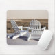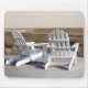 Ein Paar Adirondack Stühle winkt Küstenbesuchern zu, um die Seebrise sich zu entspannen u. zu genießen.