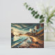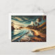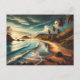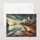 Erleben Sie die ruhige Schönheit einer Küste. Diese Postkarte erfasst sanfte Wellen, die auf einen Sandstrand rollen, mit felsigen Klippen und üppigen Palmen in der Ferne. Der Himmel ist in sanften Blau- und Goldtönen gemalt, während die Sonne zu Set beginnt und ein warmes Licht über die Szene wirft. Ideal für Strandliebhaber, Reisende und diejenigen, die Ruhe im Rhythmus des Ozeans finden.