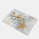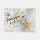 Dieses Welcome Doormat hat einen wunderschönen Seesterne-Druck an der Küste mit einem großen und kleinen realistischen Seestern und einigen anderen in Weiß auf hellblauem Hintergrund überdruckt und Willkommen in einem Script-Schriftart. Suchen Sie nach weiteren Produkten in dieser Küstenfischsammlung. Text lautet: Willkommen in unserem Beach House. Die Anpassung Ihres Familiennamen ist einfach. Design von Jenn's Emporium.