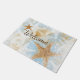 Dieses Welcome Doormat hat einen wunderschönen Seesterne-Druck an der Küste mit einem großen und kleinen realistischen Seestern und einigen anderen in Weiß auf hellblauem Hintergrund überdruckt und Willkommen in einem Script-Schriftart. Suchen Sie nach weiteren Produkten in dieser Küstenfischsammlung. Design von Jenn's Emporium.