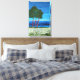 Seekante in der Bretagne mit Kiefern und Schiffen