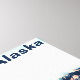 Ein stilisiertes Bild eines Küstengletschers im Süden Alaskas, das von der Küste aus gesehen wird. Kleine Eisstücke schweben im Wasser und die Szene spiegelt sich auf der Wasseroberfläche wider. Text liest, Alaska" erscheint ebenfalls. Sie können dies ganz einfach entfernen, wenn Sie möchten. Fügen Sie Ihren eigenen zusätzlichen Text hinzu.