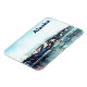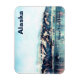 Ein stilisiertes Bild eines Küstengletschers im Süden Alaskas, das von der Küste aus gesehen wird. Kleine Eisstücke schweben im Wasser und die Szene spiegelt sich auf der Wasseroberfläche wider. Text liest, Alaska" erscheint ebenfalls. Sie können dies ganz einfach entfernen, wenn Sie möchten. Fügen Sie Ihren eigenen zusätzlichen Text hinzu.