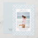 Kündigen Sie Ihre bevorstehende Hochzeit mit diesen eleganten, küstennahen 'Save-the-Date'-Karten von Redwood and Vine Design Co. an, mit einem vertikalen Foto vor einem Bambusgitter-Hintergrundmuster in ätherischem Hellblau und knackigem Weiß. Passen Sie die Rückseite mit zusätzlichem Text und einem benutzerdefinierten QR-Code an, der zu Ihrer Hochzeits-Website mit weiteren Informationen führt.