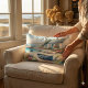Küstenhaus-Aquarell mit Meeresblickszene Lendenkissen