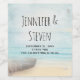 Wir bedanken uns für die Flaschenetiketten mit einem schönen rustikalen Bild. Feine Farben von hellblau, sandig braun und sanft weiß. Eine Strandlandschaft mit einem Boot am Ufer mit einem Fischernetz, das an der Seite hängt. Ein eleganter, schäbiger Look.