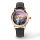 Uhr, Klassische Damenuhr mit schwarzen Lederarmband