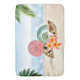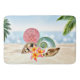 Muscheln, tropische Blume, Palmen und das Meer. Eine Liebe des Ozeans und alles, was am Strand liegt, zu einem friedlichen und lustigen Küstenbild zu machen.
