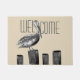 Grüßen Sie Ihre Gäste mit dieser reizenden Türmatte, die eine flüchtige Pelikanschwarzweiss-illustration und Gewohnheit einen farbigen Hintergrund kennzeichnet!