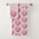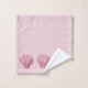Dieses niedliche Handtuchhandtuch-Set mit rosa Muscheln an der Küste auf einem Hintergrund von weichem Rosa.
