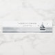 Mit diesen personalisierten Wasserflaschen-Etiketten mit Braut- und Bräutigam-Namen und -Datum stärken Sie Ihre Hochzeitsfeier und genießen Sie ein charmantes Segelboot auf den Wasserstreifen in sanften, bläulich-grauen Farbtönen. Ideal um eine Touch von New England Küstenstyle zu Ihrem besonderen Tag hinzuzufügen.