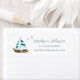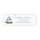 Auf weißem Grund steht ein kleines Segelboot mit einer kleinen, süßen Dusche. Original-Kunstwerk von Caroline Bonne Müller.