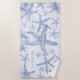 Für eine Reise zum Strand nehmen Sie dieses inspirierte Küstenbadetuch. Dieses Ausrüstungsbeschreibungen ein Muster der blauen und weißen Starfish auf einer Weltkarteüberlagerung. Personifizieren Sie einen Namen für den eines netten Geschenks. Entworfen durch weltberühmtes Künstler ©Tim Coffey.