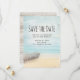 Küstenstrand mit Hochzeit des Bootes retten das Da Save The Date