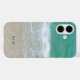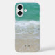 Dieses hübsche monogramm iPhone 16 Gehäuse an der Küste hat ein hübsches Foto eines Strandes mit aqua blauen Wellen und feinem Sand mit dem Monogramm oder Text Ihrer Wahl.
