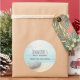 Babydusche danke Ihnen Aufkleber mit einem schönen rustikalen Bild. Feine Farben von hellblau, sandig braun und sanft weiß. Eine Strandlandschaft mit einem Boot am Ufer mit einem Fischernetz, das an der Seite hängt. Ein eleganter, schäbiger Look.