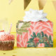 Aquarelllachs rot und rosa Korallenuntergrund mit zwei verschiedenen tropischen Weihnachtskränzen auf der Insel.