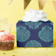 Diese aquamarinen Muschelschalotten füllen diesen dunkelozeanblauen Hintergrund in einem abwechselnden Muster. Die perfekte Ergänzung zu einem Strandhaus oder Küstendekor. Die klassisch marineblau-türkisfarbene Kombination aus Strandblau und Strandtürkis ist so beruhigend wie ein Urlaubstag am Wellness-Center oder am Sandstrand.