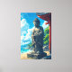 Ein Augenblick der Ruhe mit diesem Kunstwerk einer Buddha-Statue, die friedlich am Meer stehend ist. Das Bild vermittelt ein Gefühl der Ruhe, da die Statue einen ruhigen Strand überblickt, wo sich ein traditionelles japanisches Tempeltor in der Nähe befindet und ein wunderschöner Himmel über dem Meer liegt. Es ist ein perfektes Stück, um ein Gefühl der Ruhe und der spirituellen Ruhe in jeden Raum zu bringen.