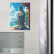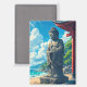 Ein Augenblick der Ruhe mit diesem Kunstwerk einer Buddha-Statue, die friedlich am Meer stehend ist. Das Bild vermittelt ein Gefühl der Ruhe, da die Statue einen ruhigen Strand überblickt, wo sich ein traditionelles japanisches Tempeltor in der Nähe befindet und ein wunderschöner Himmel über dem Meer liegt. Es ist ein perfektes Stück, um ein Gefühl der Ruhe und der spirituellen Ruhe in jeden Raum zu bringen.