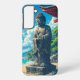 Ein Augenblick der Ruhe mit diesem Kunstwerk einer Buddha-Statue, die friedlich am Meer stehend ist. Das Bild vermittelt ein Gefühl der Ruhe, da die Statue einen ruhigen Strand überblickt, wo sich ein traditionelles japanisches Tempeltor in der Nähe befindet und ein wunderschöner Himmel über dem Meer liegt. Es ist ein perfektes Stück, um ein Gefühl der Ruhe und der spirituellen Ruhe in jeden Raum zu bringen.