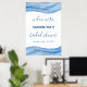 Dieses elegante und anmutige Design ist handbemalt Aquarell in den Tönen von hellblau, klassisch blau und marineblau. Das abstrakte Design ähnelt den Ozeanwellen, die sich perfekt für ein Brautparty mit Meeresbehandlungen, Wassersport oder Wassersport eignen. Fügen Sie einfach den Namen und das Veranstaltungsdatum der Braut zu diesem schönen 24x36 Party Zeichen hinzu.