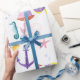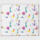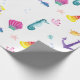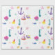 Küstenfarbenmuster mit üppigen Illustrationen zum Leben im Meer in schönen Türkis, Rosa und Gelb. Karo in unserem Laden für mehr Verpackungspapier, geeignet für Kindergeburtstage und Babyduschen.