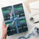 Ein friedlicher Moment in der langen arktischen Nacht. Ein Eisbär Erholungen am Rand eines offenen Bereichs im Packeis. Die Nordlichter leuchten in der Ferne; helle Sterne blinken über dem Kopf. Inuktitut Text mit dem Text "ᑯ ᐊ ᓇ ᓄ ᕕ ᒃ ᐃ Nachfolge" (Kuvianak Innovia - Fröhliche Weihnachten), in dem in Nunavut adoptiert syllabischen Alphabet, erscheint auch in blau-weiß. Die Inuit werden gemeinhin als Eskimo bezeichnet, aber dieser Begriff wird nun abgewiesen, da er als abstoßend gilt. Eisbären sind gefährdet. Wie lange werden solche Szenen noch stattfinden können? Helfen Sie bitte, Polarbären vom Aussterben retten.