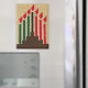 Das auf Magnet gedruckte Bild stammt aus einem Foto eines originalen Wandgemäldes aus Wandteppichen, das handgefertigt und urheberrechtlich geschützt ist. Das Bild der einzigartigen handgefertigten Kreation mit roten schwarz-grünen Kwanzaa Kerzen in holzbrauner Kinara wird auf dem Magneten reproduziert.