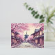 Experience the enchanting beauty of Kyoto, Japan, in full bloom with this delicate watercolor painting postcard of cherry blossoms and rose trees.