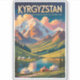 Kyrgyzstan retro vector travel design. From the serene beauty of Issyk-Kul Lake and the rugged Tian Shan range to the cultural heart of Bishkek and the scenic trails of Ala Archa National Park, Kyrgyzstan offers an unforgettable blend of nature, adventure, and tradition.