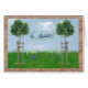 Die hebräische Glückwunschphrase, "L chaim", wird in den hebräischen Charakteren sowie in der Transkription zwischen zwei symbolischen jungen Bäumen gezeigt