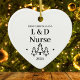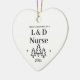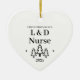 Erste Weihnachten als L&D-Pflege Herz-Ornament für einen neuen Job in der Pflege in der Arbeits- und Liefereinheit. Elegante Porzellan Keramik Urlaubsornamente in Weiß mit schwarzer Schrift. Mit Weihnachtsbäumen und Sternen.