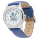 Kinderuhr aus Edelstahl mit blauem Lederarmband