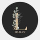 L Monogramm Floral Personalisiert Runder Aufkleber