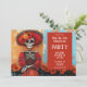 Mach dich bereit zum Party, als gäbe es keine Mañana! Diese Einladung von Día de los Muertos ist Ihr Ticket für den knochenträchtigsten Bash des Jahres. Mit La Catrina Calavera ist das Skelett selbst eine Fashionista, die einen sagenhaften roten Hut mit Marigolds schmückt. Sie ist verkleidet, um in einem roten Kleid mit Spitzenteilen zu beeindrucken, damit auch die Toten ihrem Charme nicht widerstehen können. Der Sondertext auf der Einladung lautet: "Join us for a Día de los Muertos PARTY Samstag, Oktober 30 20:00 11 Muertos Ave. 2 Totes Tal, Benötigtes Geborenes Kostüm, BYOD"