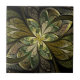 Copyright © 2014, Susan Wallace. Blätter des befleckten Glases des Imitats in den Schatten des grünen und gelben Rahmens eine zentrale Blume des Goldes in diesem verwickelten abstrakten Stück.