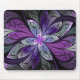 Copyright © 2014, Susan Wallace. Blätter des befleckten Glases des Imitats in den Schatten helles Lila, silbern, des Singrüns und des violetten Rahmens eine zentrale Blume von vibrierendem Lila in diesem verwickelten abstrakten Stück.
