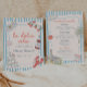 This La Dolce Vita bachelorette party invitation features hand-drawn coastal illustrations inspired by an Italian weekend, paired with soft blue stripes and coral script lettering. The front introduces the celebration, while the back includes a coordinated weekend itinerary, cost placeholder, and RSVP section to keep plans organized.