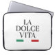 Tragen Sie Ihre Elektronik stilvoll mit dem Laptop-Ärmel "La Dolce Vita". Diese Schutztasche mit fett schwarzen Buchstaben und lebhaften, grün und rot inspirierten Akzenten, die von der italienischen Fahne werden, ist perfekt für alle, die die italienische Kultur und die Lebensfreude schätzen. Schützen Sie Ihren Laptop mit einer Touch von Eleganz, ideal für Reisen, Arbeiten oder den Alltag.