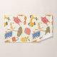 Bring Italian summer vibes to your bathroom accessories with this bath towel featuring italian beach icons pattern like striped umbrellas, scooter, lemons, gelato, swimsuits, seashell and sunglasses.