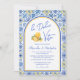 Celebrate your Italian summer destination wedding with a chic La Dolce Vita themed invitation. Featuring Mediterranean tiles in blue, white, and yellow, this elegant design is accented with a trendy arch, fresh lemon gelato illustration and script calligraphy. Inspired by Positano and the Amalfi Coast, it captures the romance and joy of a sun-soaked seaside celebration and sets the perfect tone for a stylish Mediterranean wedding. Please contact me if you have any requests for custom products.