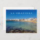 Ein schöner Ausblick auf Caleta de Sebo auf der Insel La Graciosa auf den Kanarischen Inseln auf einer Postkarte gedruckt.