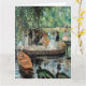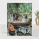 Pierre-Auguste Renoir. La Grenouillère ist eine wunderschöne Landschaft am Fluss in grünen Tönen. Es gibt Boote am Ufer. In der Mitte steht eine Gruppe von Menschen auf einem Weg unter einem sich ausbreitenden Baum. Im Hintergrund sind Yazta und Bäume. Reproduktion berühmter Kunstbilder im öffentlichen Bereich.