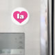 Dieser Magnet verfügt über ein pulsierendes, heiß rosa Herz, das die fett, weiß, abgerundeten Kleinbuchstaben la, eine spielerische Abkürzung für Louisiana, den pelikanischen Staat oder Los Angeles, die Stadt der Engel, enthält.