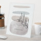 The flowing script is layered over a calm abstract background of soft horizontal forms and muted neutral tones. Subtle texture and open space create a composition that feels grounded, refined, and visually harmonious.