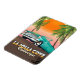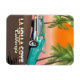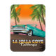 La Jolla Cove California Reiseplakat mit einem schönen alten Retro-Auto von einigen großen schwingenden Palmen.