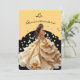 This modern style 5x7 size invite is shown created in Golden and Black color scheme with a young lady.