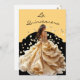 This modern style 5x7 size invite is shown created in Golden and Black color scheme with a young lady.